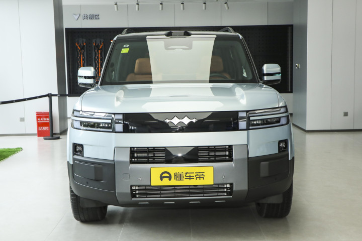 接着看车辆的外部设计与尺寸,钛7的车身长度为4999毫米,距离5米仅差1毫米,轴距为2920毫米,这样的尺寸与方程豹豹8较为接近。车头部分配备主动闭合式进气格栅,可根据实际行驶情况自动或手动控制开启与关闭,有效平衡车辆的散热需求与风阻表现。采用分体式大灯设计,大灯中间通过一块黑色饰板连接,饰板中央镶嵌方程豹品牌LOGO,整体设计融合了科技感、现代感与一定的硬派风格。轮毂方面,低配车型搭载19英寸轮毂,匹配前双活塞卡钳;高配车型则配备20英寸轮毂,搭配前四活塞卡钳,从配置来看,预计其制动测试成绩在36米左右,制动性能较为出色。轮眉设计简约,没有采用传统越野车常见的塑料饰板,让车身侧面看起来更显精致。车身侧面的脚踏板需要额外选装,外后视镜尺寸较大,镜身上设有细长的蓝色辅助灯光,尾灯也具备辅助驾驶开启时的灯光提示功能。车顶配备全景天窗和行李架,行李架的承载重量可达200斤,日常放置自行车、帐篷等物品比较方便。