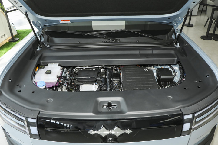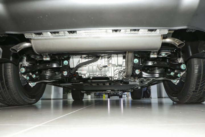 再来说说底盘结构,钛7采用前双叉臂式独立悬挂与后多连杆式独立悬挂的组合。底盘平整度处理得比较好,同时搭载第五代插混技术,电池包位置相对较高,能降低行驶过程中底盘剐蹭电池包的风险,更平整的底盘设计也有助于减少车辆行驶时的风阻,在户外复杂路况行驶时,还能在一定程度上防止泥沙附着。前部配备全框式钢制副车架,底盘高度为23cm,满载状态下底盘高度为19cm,底盘下方还专门设置了机油更换口。前悬的双叉臂式结构在稳定性方面表现较好,下支臂、弹簧减震支架以及羊角底座均采用铝合金材质,这种材质选择在降低底盘重量的同时,不会对底盘支撑力造成影响。后悬为五连杆结构,其中四根摆臂采用双层冲压钢制材料,另外一根摆臂使用铝合金材质。值得一提的是,这套底盘系统还搭载了云辇C车身控制系统和预瞄功能,在行驶过程中,能根据路况实时调整悬挂状态,尤其在连续颠簸路段,能有效提升车辆的乘坐舒适性,这一点在实际体验中感受比较明显,经过颠簸路段时,车身的震动过滤比较充分,车内人员的乘坐体验较为舒适。